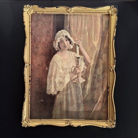 Hyväkuntoinen lasitettu taulu.