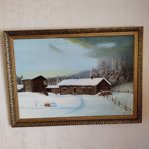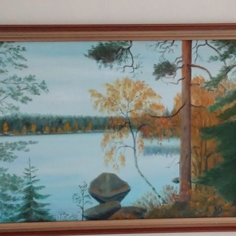 Merimaisema. Puukehykset, kiilattu. 63 cm * 51 cm. Ollut tupakoimattomassa taloudessa.