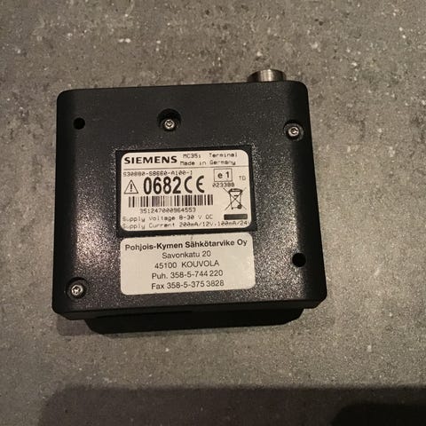 Siemens MC351i tietoliikennemodeemi esim. tekstiviestien siirtämiseen Logo logiikasta. Mielenkiintoinen kapine, toimivana purettu. Paikka SIM kortille. Laitteessa on liitäntänä Ethernet kaapeli. Tällä voi siirtää esim. hälytyksiä, lämpötilan raja-arvoja, vesivuotohälytksiä, murtohälytyksiä, ym.