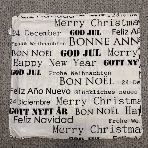 Hemtexin talvinen kappaverho väriltään valkoinen/hopea, kimallusta ja läpikuultava, lumihiutaleiden kuvia. Hyvä kuntoinen, pituus n 210 cm ja korkeus 53 cm.