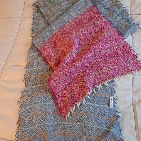Myydään Expolanan todella paksu villakaulahuivi. Huivi on neulottu vaaleanharmaasta villalangasta ja huovutettu.