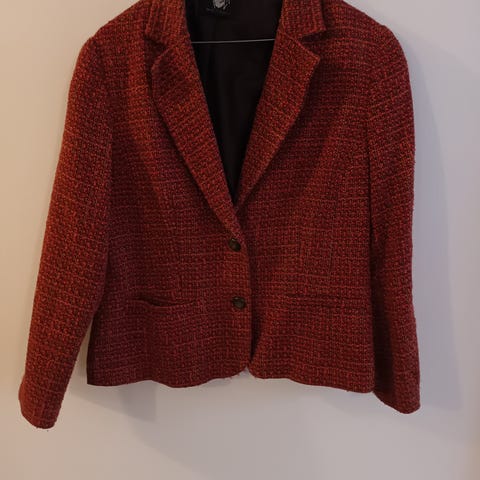 Musta Polan jakku. Koko 46. Ympärysmitta 120 cm. Kokonaispituus 85 cm. Hihan pituus kainalon alta 40 cm. Hinta 10 euroa.