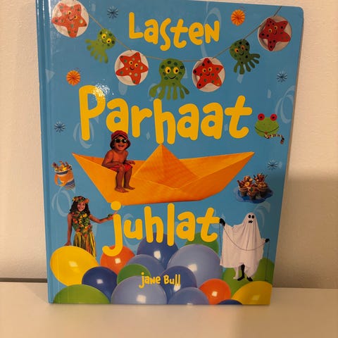 Takakannessa vähän kulumaa. Muutamalta sivulta ylä-tai alareuna vähän revennyt, ei haittaa käyttöä. Mukavia vinkkejä lasten juhliin!