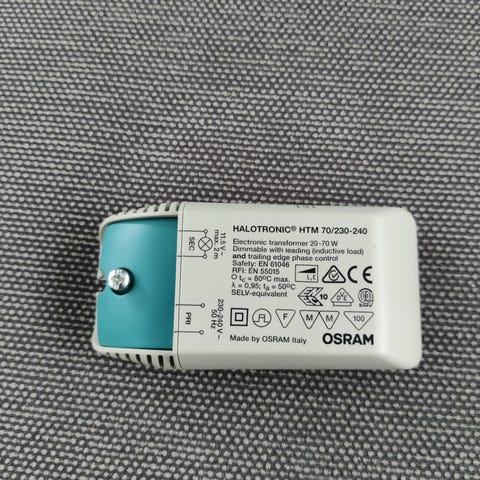 20-70W, 230V/12V, IP20, himmennettävä, 33x52x108mm. Löytyy kolme kappaletta. 15€/kpl. Voin lähettää. Laita viesti.