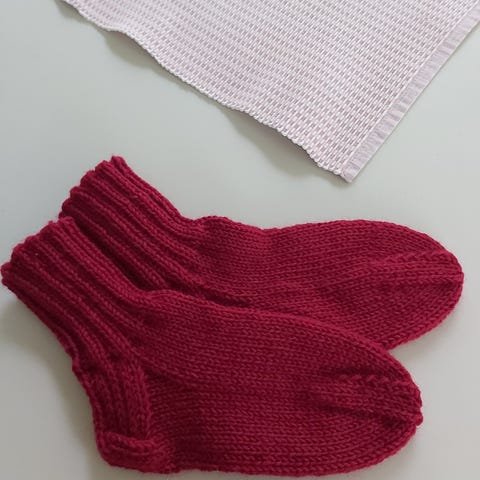 Myydään käsinkudotut villasukat. Kotimainen lanka, Novita 7-veljestä. Viininpunaiset. Vahvistettu kantapää. Konepesu.