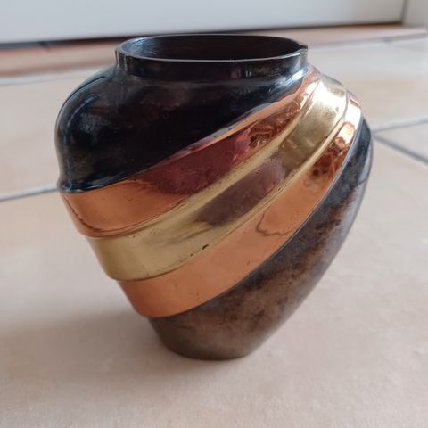 Myydään kuvan maljakko, joka on siis entisessä elämässään ollut pullo, jostain 60 luvulta, korkeus 23 cm.