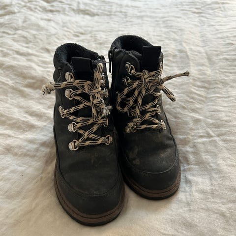 Käytön jälkiä jo löytyy, silti oikein hyvät kengät seuraavalle pikkuiselle.