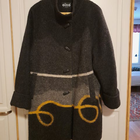 Uusi, naisten pitkä villakangastakki, XL/XXL