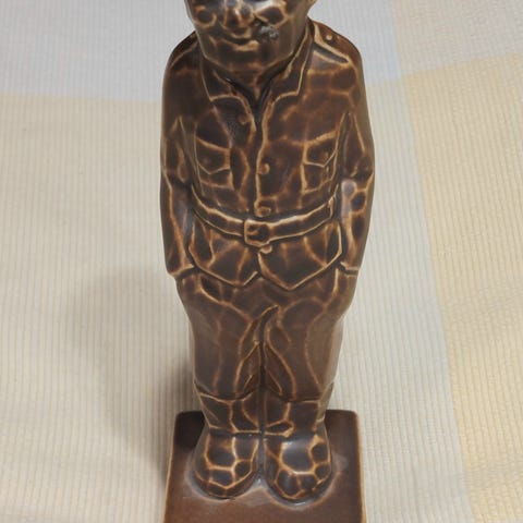 Pystykorvapatsas tumman MDF-jalustan päällä, mihin on upotettu kello. Patsas on tehty liitukeramiikasta ja kuparipinnoitettu. Pintaa on tummennettu, jonka jälkeen kiillotettu "antiikinomaiseksi". Viimeistelynä lakkaus. Patsas on suomalaista designia. Saatavana myös kelotukilla tuotenumerolla 7527T.