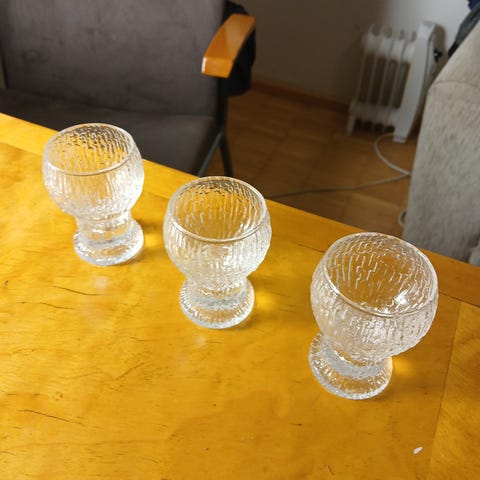 Myydään kuvien mukainen setti Iittalan tarrallisia snapsilaseja. Virheettömässä kunnossa.