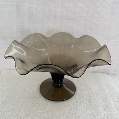 Lasimalja jalallinen lasikulho lasiskooli romantt shabby chic cottage vintage