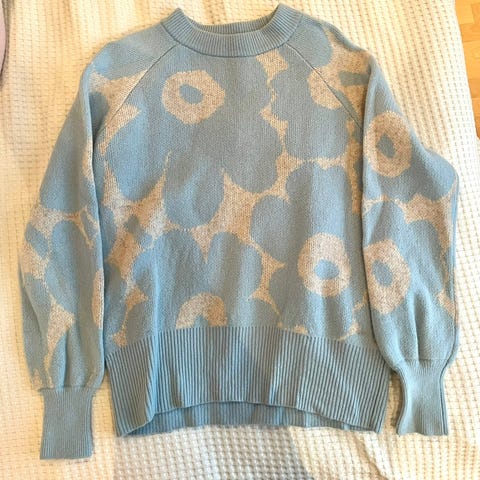 Vaaleansininen Marimekon L-koon villapaita. Erinomaisessa kunnossa, sillä käytetty vain muutamia kertoja. 100 % villaa.