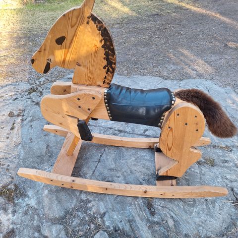 50-luvulta keinuhevonen, joka kunnostettu. Keinumiseen tai koristeeksi. Nouto Laajasalosta.
