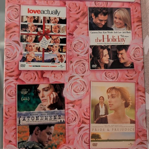Myydään romanttisia elokuvia dvdnä. Kaikki muut naarmuttomia, paitsi Holiday, Just my luck, Angel eyes, I'm with Lucy ja toinen Mamma Mia!.