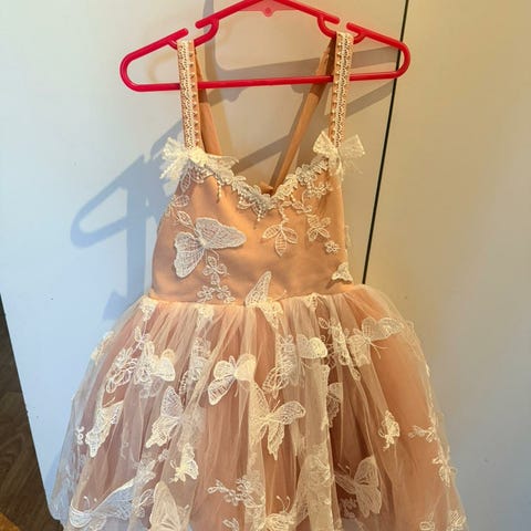 Super söpö, kerran pidetty mekko koko T4, 4-vuotiaalle. Helmassa tylliä.