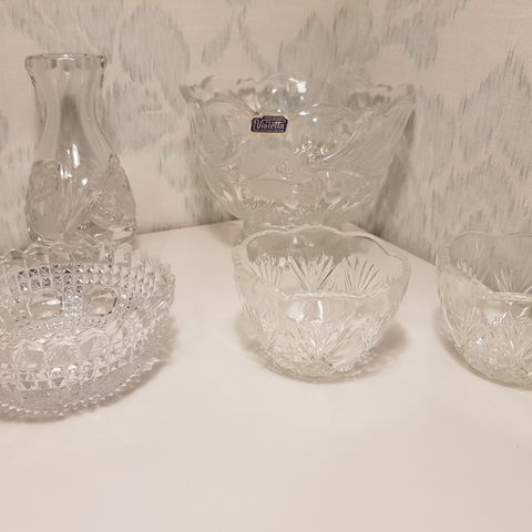 1970-1980 luvun kristallisarja 12 osaa kulhoa, maljakkoa yhteishinnalla