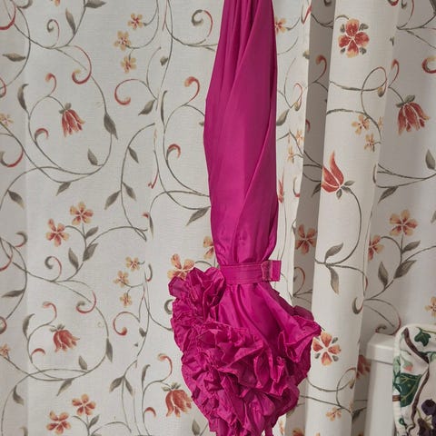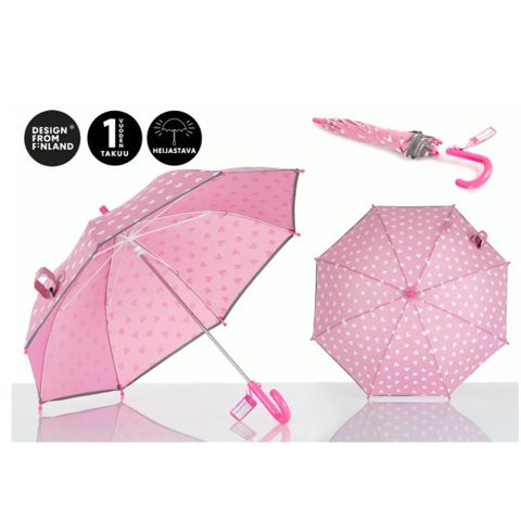 Pinkki valko pilkullinen lasten Pisara sateenvarjo, päissä muovipallot
