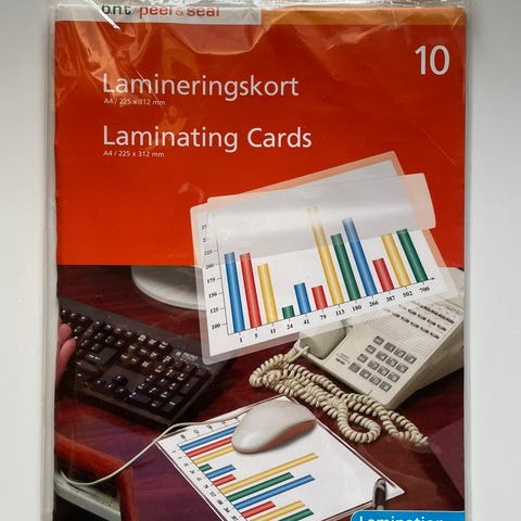 20kpl A5-kokoisia laminointitaskuja, 250 + 250 microns.