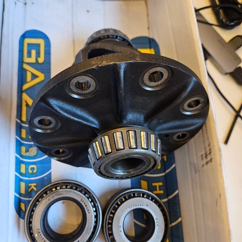Tuollainen varmaankin ison atlas perän tasauspyörästö tuli varaosa auton mukana. Myös jotain Ford Capri MK3 osaa löytyy, ei peltiosia.