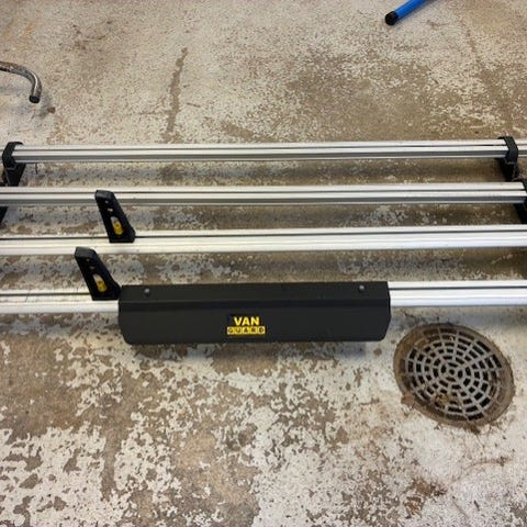 Pakettiauton taakkateline korotettuun kattoon missä on sivussa sadekouru. Paketti sisältää 2 teräksistä neliötankoa ja jalkasarja 4 kpl. Soveltuu kattokorkeuksille 22-37 cm. Yksi tanko kestää max 50 kg. Pitkään malliin tilaa 2 sarjaa. TUV ja GS hyväksytty.