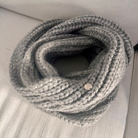 Siistikuntoinen Metsolan neulottu kaulahuivi puuvillaa. Koko n. 30cmx180cm. Muutama langannousu.