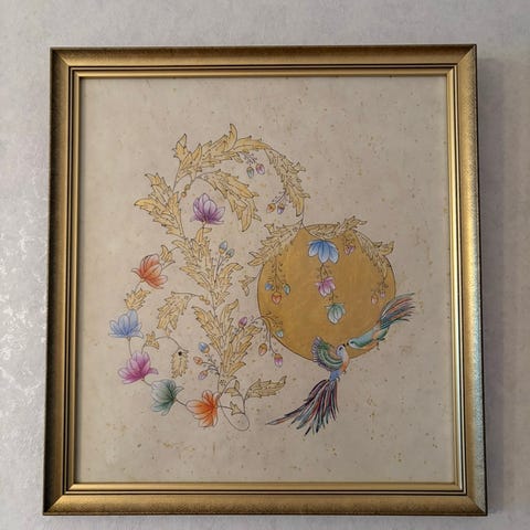 Aitoa kultaa reunakoristelu, Japaniaiheinen taulu handmålad äkta guld