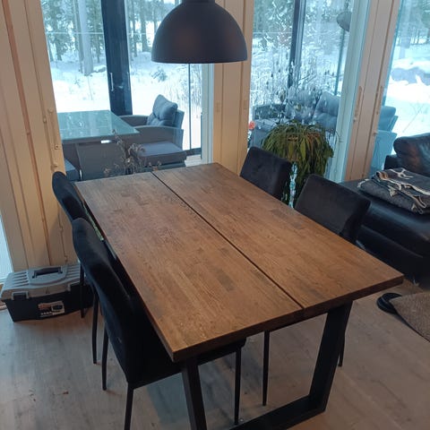 Upea täyspuinen ruokapöytä. Kyllästyttääkö heikkolaatuiset kalusteet? Notkuuko pöytä ja tuolit alla? Tämän pöydän päälle kelpaa kattaa vähän tukevampaakin tarjoilua, eikä notku tai heilu. Pöydän seuraksi suosittelemme Gärsnäs Riksdagen design-tuoleja (kts. erillinen ilmoituksemme). Näyttää hyvältä ja on hyvä!