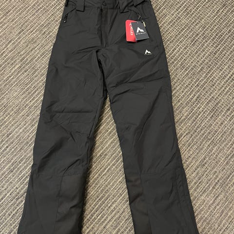 Takapuolessa vuori pehmeä. Vyötäröllä sisäpuolella kiristysmahdollisuus. Vetoketju sisäreisissä. Lumipussit lahkeissa. Taskut vetoketjulliset.