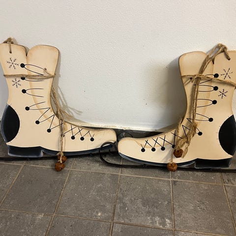 Hopean/valkean värinen luistimet vintage kuusenkoriste,