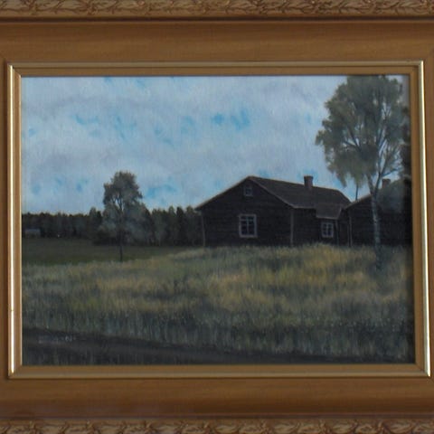 Samppa Niemisen öljymaalaus "Maalais-aihe". Maalauksen mitat: 45 x 60cm. Ei kehyksiä. (Nouto tai postituskulut lisätään hintaan).