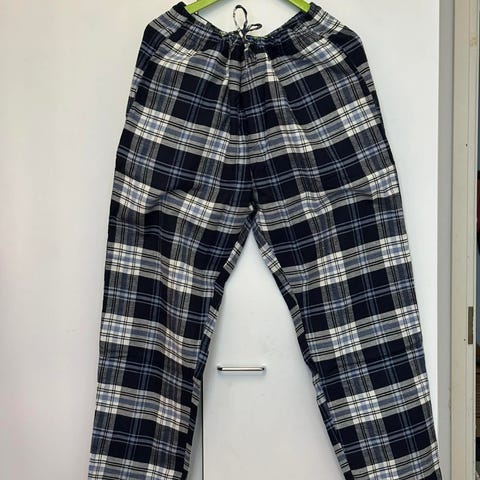 Miesten Björn Borgin pyjamahousut. 100% puuvillaa. Housuissa etunapitus ja joustava vyötärö kiristysnauhalla. Avoimet taskut. Koko XL. Käyttämätön. Ovh. 49,95.