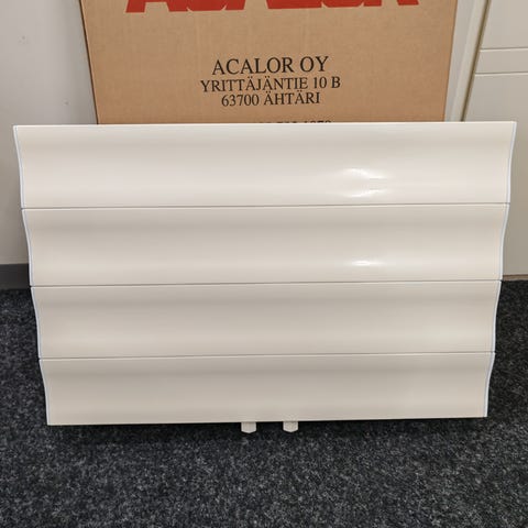Siistikuntoinen käyttövesipatteri, jossa liitännät alhaalla keskellä. Korkeus 60 cm ja leveys 80 cm. Uutena maksaa 460 eur.