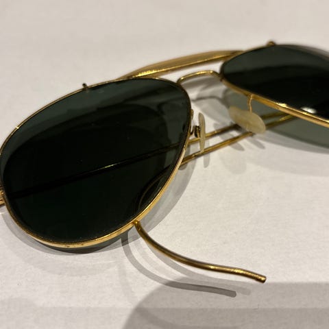 kehyksissä alkuperäiset laadukkaat optikkoliikkeen sävytetyt linssit väri ruskea, linssit ei-voimakkuudella ja näiden ostopaikkana optikkoliike ostoskeskuksessa Stanford Shopping Center Palo Alto CA keväällä 1997
