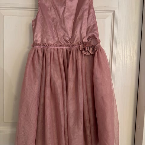 Tyttöjen vanha roosa juhlapaita Kitzberg 140cm, ohutta, joustavaa, laskeutuvaa samettia. Pitkähihainen, avoimet olkapäät, edessä röyhelö. Pituus n. 50cm, kainalo-kainalo mitta 37 cm. Uudenveroinen.