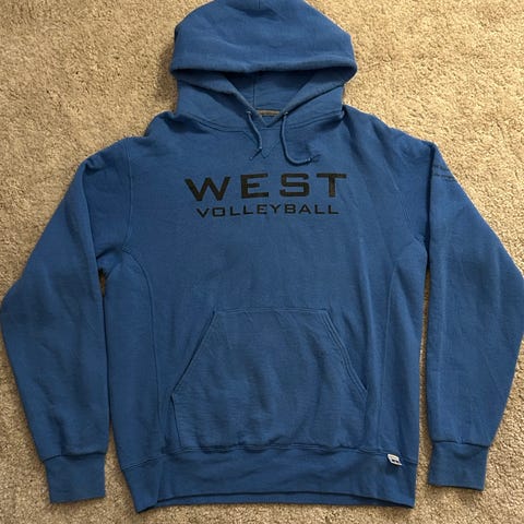Huppari muuten hyvässä kunnossa, mutta narut puuttuvat, sekä etuosassa on pieni haalea jälki, joka ei juurikaan näy. Voi lähteä tahranpoistoaineella. Paita ostettu NCAA-kaupasta New Yorkista hintaan 79€