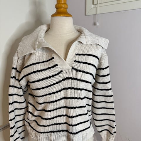 Valkoinen/vihreä/musta Gina Tricot neule. Koko L.
