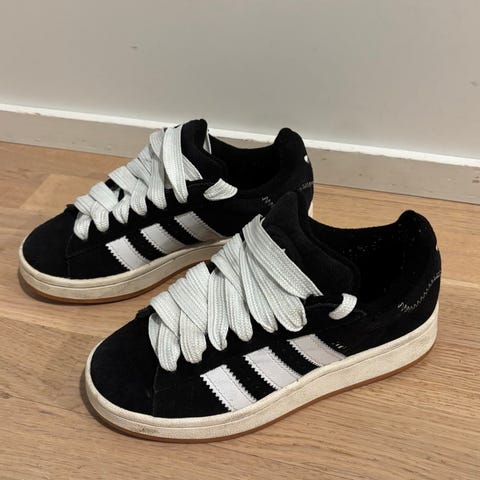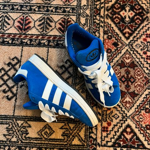 Hyvässä kunnossa olevat tummansiniset Adidas campukset. Todella mukavat jalassa sekä tyylikkäät, kokoa 38,5. Hintaa voi tarjota.