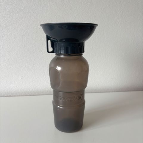Englannista ostettu koiran juomapullo mikä palautaa juomattoman veden takaisin säiliöön.