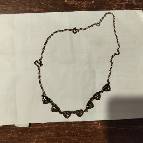 Pieni Talonsydän pronssinen kaulakoru. Lukossa hieman patinaa, muuten hyvässä kunnossa. Kts kuva.
