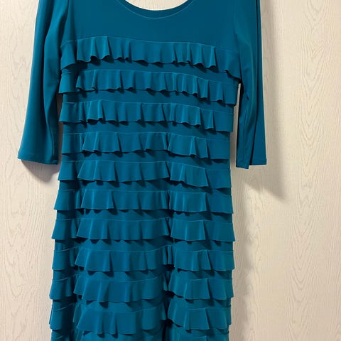 Kerran käytetty. Kaunis koristeltu yläosa. Musta alaosa. Mekko joustaa ja on miellyttävä päällä.