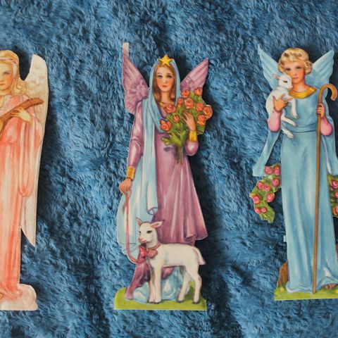Toisen kuvan enkelit ovat pahvisia, toisen kuvan enkelit ovat kiiltokuvia.