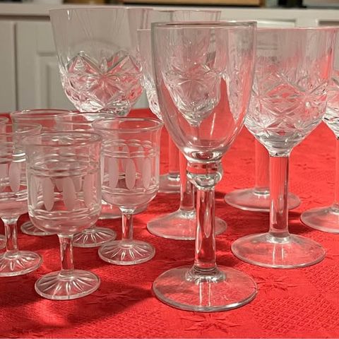 Kristallilasit 5 kpl, puolalaiset. Lasin mitat; korkeus 8.5 cm, halkaisija 7 cm. Sopii vedelle - viskille. Löytyy samaa sarjaa punaviinilasit 4 kpl, snapsilasit 4 kpl ja sherrylasit 12 kpl. Nouto H.ki - Vihti. Postitus kuluja vastaan.