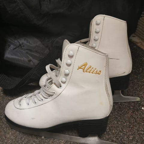 Myydään kaunoluistimet kokoa 36, sisämitta n.22,5 cm. Valkoisessa pinnassa näkyy käytön jälki, mutta kauneusvirheistä huolimatta muutoin vielä toimivat luistimet.