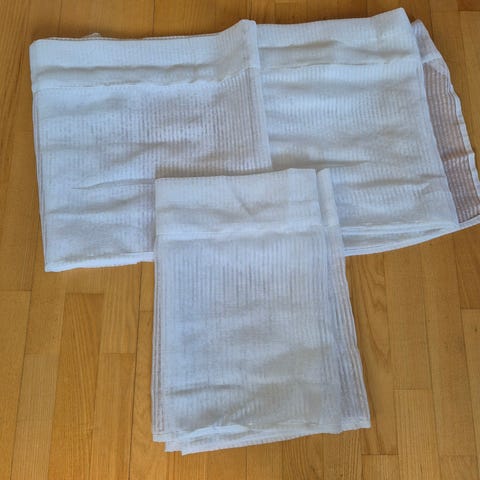 Hedelnäkappa 2 kpl pit 215, Kork 46 cm ja salusiinit 4 kpl Lev 70 ja Kork 46 cm, yht. 5 eur, vihreä kukallinen 2 kpl kappa 208 x 52 cm, salusiinit 4 kpl 85 x 37 cm 5 eur.