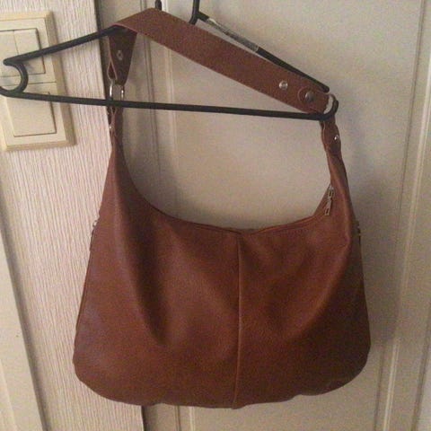 Uusi, kotimainen, pieni lompakko-olkalaukku, aitoa nahkaa. Koko 13 x 16cm ja aukaistuna 32 x 16cm. Sisällä läpällinen kotelo, vetoketjullinen kolikko kotelo ja 2 kpl setelitaskua. Olkahihnan pituus 120cm. Voidaan kiinnittää myös vyöhön takapuolella olevalla pidikekaitaleella, josta vyö pujotetaan läpi (kuva). Hieno lahjaidea ystävälle.