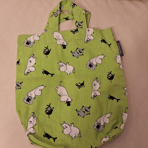 Uusi Muumi kassi. Finlayson Saarimuumi. Meidänmeri kampanjan tuote muutamien vuosien takaa. Ollut kaapissa säilössä , vähän rypyssä. Muumipapan ympärillä vähän mustaa, josta juna 3.
