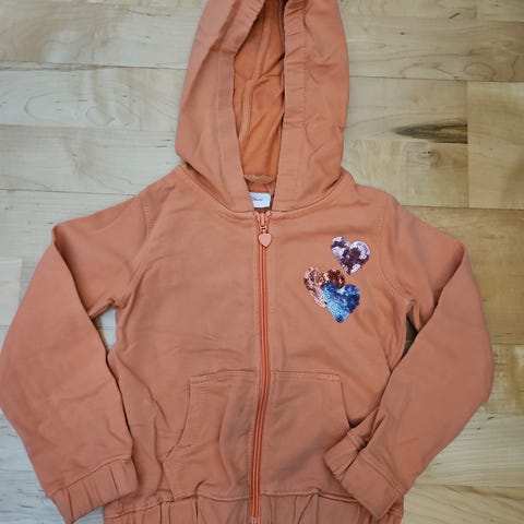 S. Oliver paksu college huppari, paljetteja kuviona. Koko 92/98. Ryppyinen mutta muuten siisti ja ehjä. Mukava lämmin huppari. Koko ennemmin 92