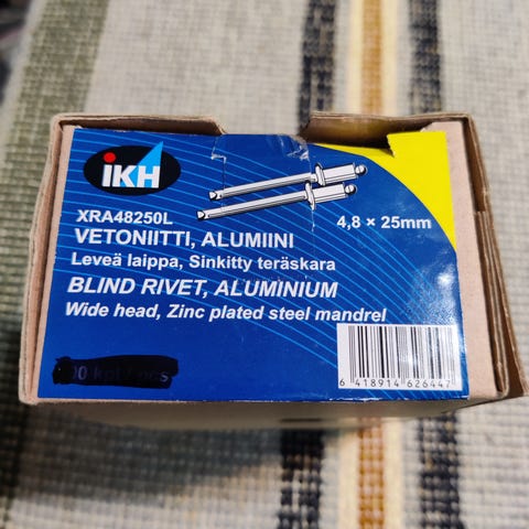 Siitä turhat niitit parempaan käyttöön... Punnittu ja se 500 kpl on tuossa+poranterä.