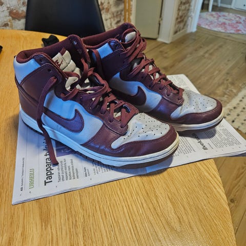 Huonokuntoiset dunkit jossa reikä kantapään kohdalla