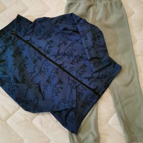 Kaksi fleeceasua koossa 104. Vihreä Ciraf ja sininen Kaks Lindex. Nyppyä on, mutta muuten ehjät.